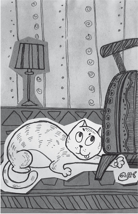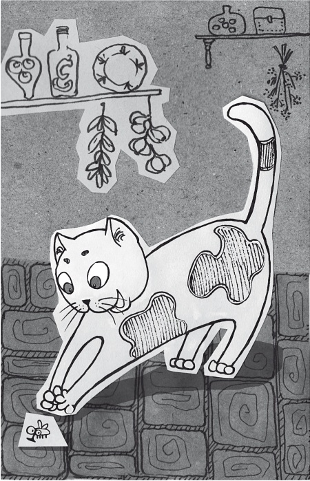 C – кошка ищет игрушку (лакомство) на полу. |_____|