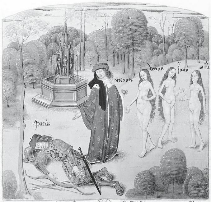 Суд Париса, «История Трои», манускрипт второй половины XV в., Франция.