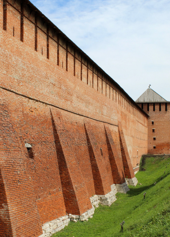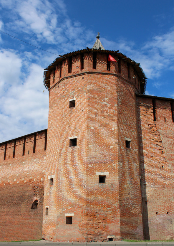 Стены и башни Коломенского кремля с секретом. Мы видим красные кирпичи, но внешний вид обманчив.