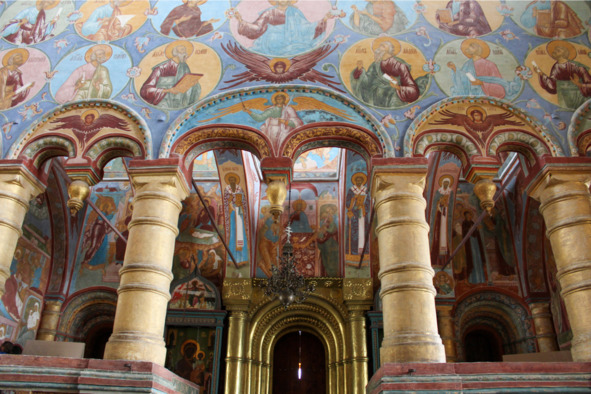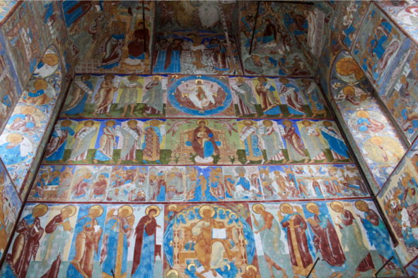 Роспись стен и сводов хорошо сохранилась, цвета можно назвать яркими.