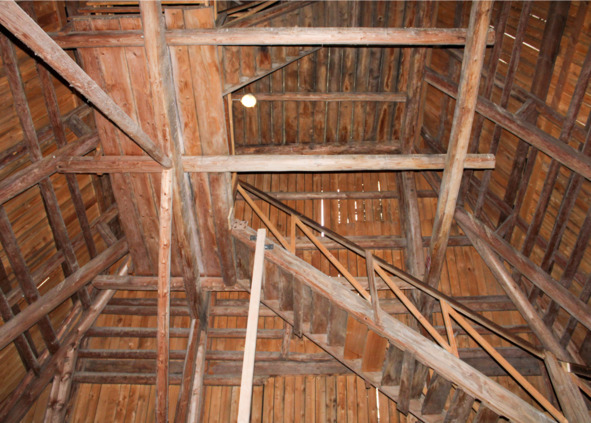 Смотровая площадка расположена на последнем ярусе под кровлей.