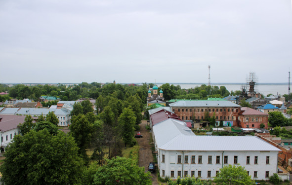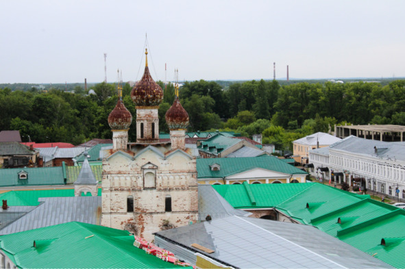 Открывается вид на купола Воскресенской церкви и Успенского собора.
