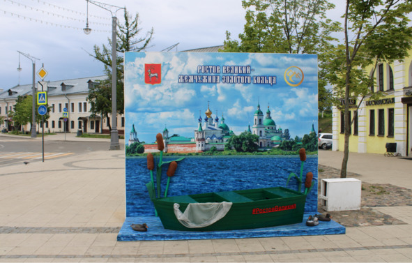 На площади есть фотозона «Ростов Великий – жемчужина Золотого кольца» (обычно жемчужиной называют Суздаль).