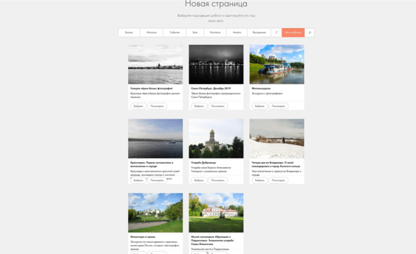 «Мои шаблоны» доступны при создании новой страницы в папке и в разделе «Мои сайты».
