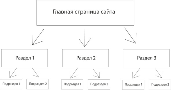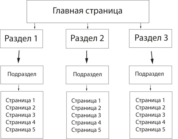 Поэтому необходимо определиться с количеством разделов и подразделов на сайте, составить схему. Ее можно нарисовать от руки или использовать только слова.