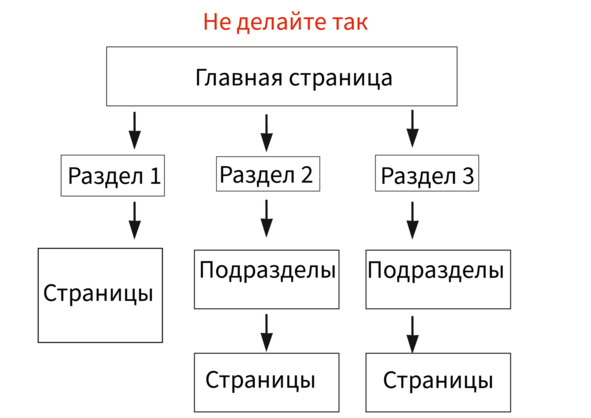 Я нарушила негласное правило о структуре сайта и сделала в одном разделе страницу со списком страниц, подразделов нет. Так делать нельзя, но сайт мой личный, и я могу себе позволить не использовать стандартные шаблоны сайтов. Дело в том, что сайт должен содержать либо разделы, подразделы и основные страницы, либо разделы и основные страницы. Нельзя использовать комбинированную структуру сайта, потому что это непрофессионально.