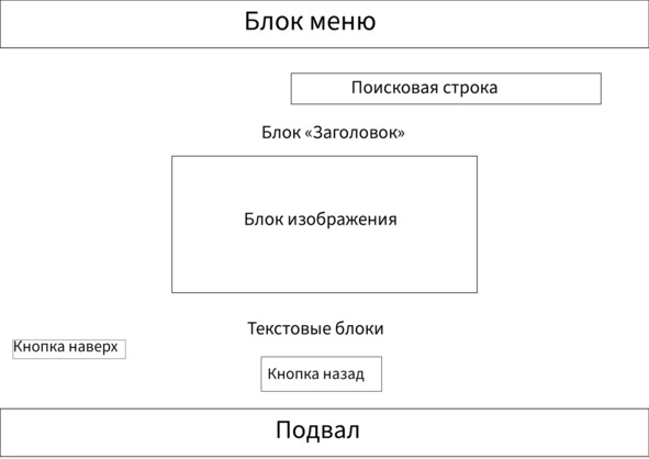 На каждой главной странице разделов я использовала блоки «Меню» и «Поисковая строка», а также список страниц.