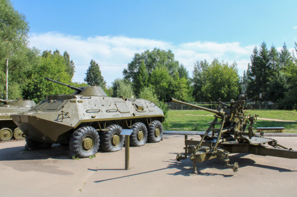 На площади около здания Первой женской гимназии находится Экспозиция Военная техника. Открыли 7 сентября 2002 года.