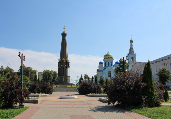 Монумент Славы (Героям Отечественной войны 1812 г) считается главной достопримечательностью (на переднем плане на фото), но собор Казанской иконы Божией Матери старше.