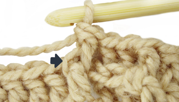 Чтобы связать вогнутый столбик с накидом необходимо ввести крючок в отверстия над столбиком с накидом предыдущего ряда.