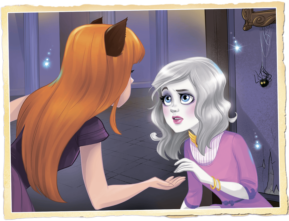 Жизнь в Вермонстре уже кипела вовсю. Ведьмы первыми открыли свои лавки, улицы заполнились горожанами, спешившими по делам. Кира даже чуть не сбила с ног человека-невидимку, хотя если бы была чуточку повнимательнее, то увидела бы его тень на брусчатке. Путь до школы занял больше времени, чем Кира рассчитывала. Тори пытался подраться с каждым кусающимся почтовым ящиком, плевался дымом или гонялся за чёрнобелками. В конце концов у самой школы Кира подхватила окра на руки, взбежала по лестнице и понеслась по пустым коридорам. Оставалось ровно две минуты до начала экзамена по специализированной магии. Завернув за угол, она со всего размаху налетела на другую ученицу. Удар вышел такой силы, что коридор засыпало колючими синими искрами. Кирина сумка полетела в одну сторону, Тори с визгом – в другую, а незнакомая девушка оказалась на полу, среди высыпавшихся из её рюкзака вещей.