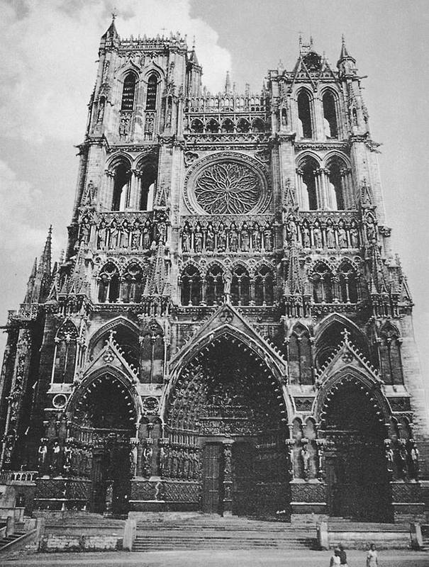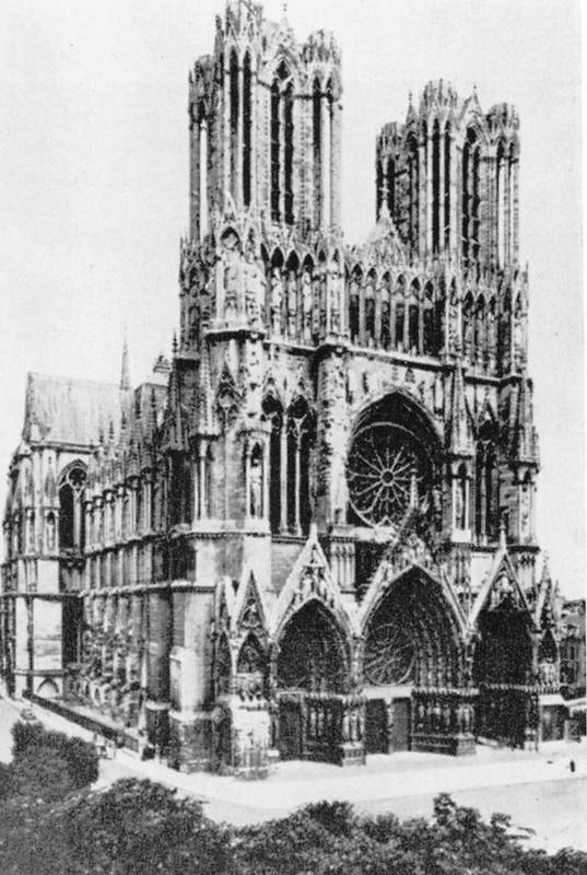 Знаменитый Реймсcкий собор, самый большой во Франции, где происходило коронование французских королей (его длина 150 м, высота башен 80 м) строили с 1211 г. до начала XIV столетия. Часто происходило так, что готические храмы оставались незавершенными. У большинства из них не было главного элемента – шпиля, да и башни на фасадах, которые достраивались в разное время, имели различный архитектурный облик и даже высоту (именно так произошло с башнями амьенского собора Нотр-Дам де Амьен (длина 145 м, высота нефа 38 м). Крипты и нефы ранних готических соборов создавались в период, когда еще было сильно влияние романской архитектуры, а заканчивались в период торжества готики.