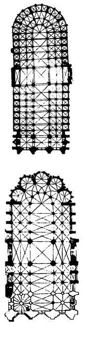 Планы готических соборов: а – собор Парижской Богоматери; б – собор в Мо