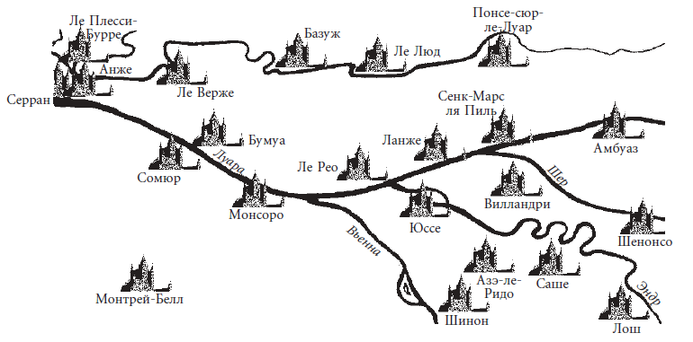 Теперь эти старинные донжоны, храмы и резиденции, хранящие память об исполненных изящества и красоты временах, считаются национальным достоянием французской нации, поскольку практически каждый из замков, которые можно увидеть по берегам Луары, Эндра, Шера, Вьенна или Мена, – прежде всего история; и у каждого при этом возникают свои ассоциации, и у каждого перед мысленным взором проходят величественные картины прошлого, будь то таинственные обряды кельтов, торжественное шествие легионов Цезаря, устрашающее нашествие гуннов, грандиозный освободительный поход к Орлеану Жанны д’Арк, развлечения и драмы эпохи Возрождения (самой насыщенной эпохи в истории замков Луары, по праву считающейся временем их расцвета) и, наконец, сражения сторонников монархии и республиканцев в период Великой французской революции.