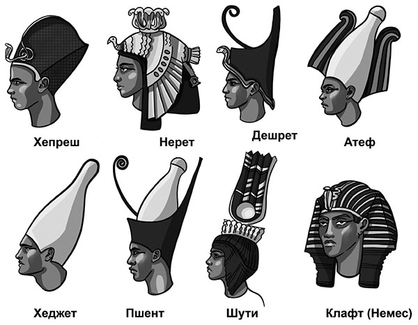 Если с нашими инсигниями все понятно, то с основными царскими коронами разобраться существенно труднее. Ведь у фараона отдельная корона на каждый случай.