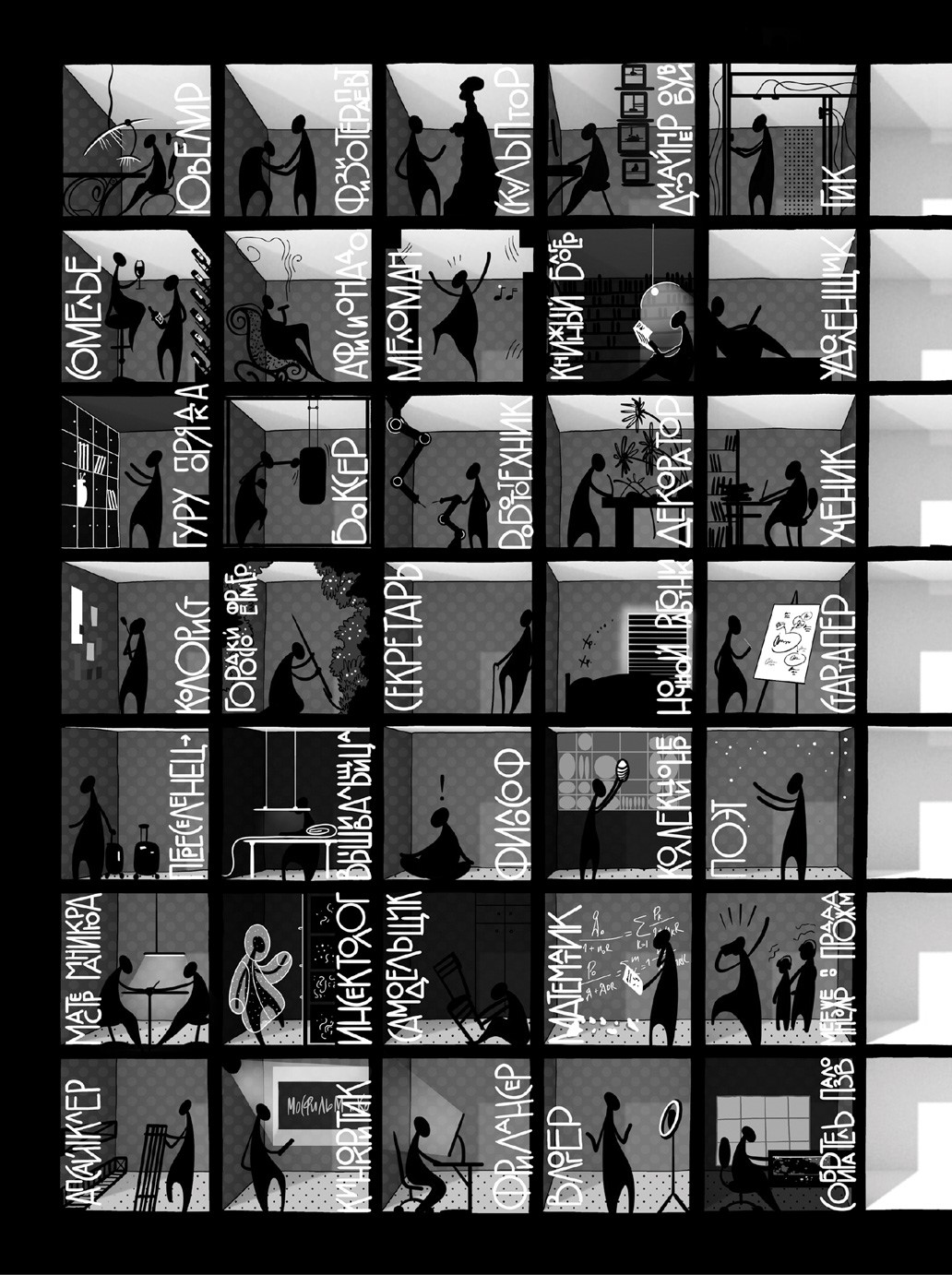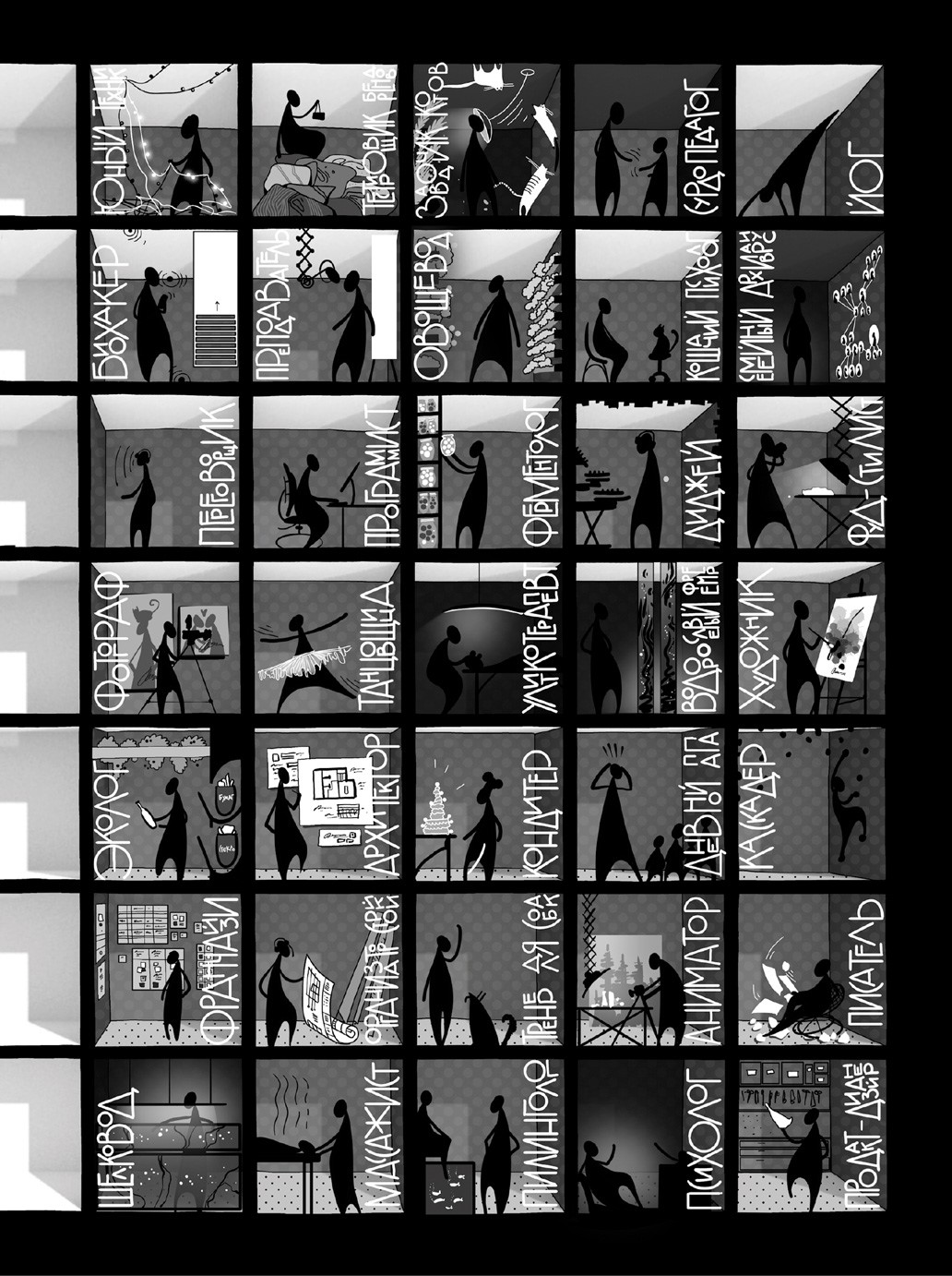 Теперь предлагаю изучить ваши сценарии – это своего рода предсказания, которые делают архитекторы, создавая пространство. Это предположения о траектории передвижений, действий и ощущений человека, оказавшегося в спроектированных помещениях. Эти передвижения можно запрограммировать: попадая в сценарно сманипулированное помещение, вы будете вести себя так, как задумали проектировщики, смотреть туда, куда нужно, а на моменты, которые от вас хотели скрыть, не обратите внимания. Не то чтобы эти манипуляции делались вам во вред, но вы оказываетесь ведомыми. И я тоже – все, у кого есть психика, становятся марионетками.