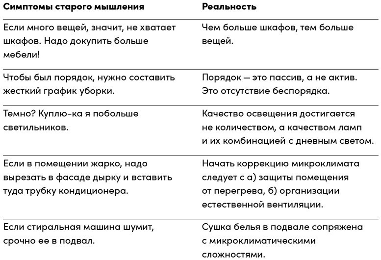 «Расскажите мне о своих домашних проблемах, и я укажу на ваши привычки!» Когда хитрый архитектор разговаривает с клиентом, он не спрашивает, чего тот хочет. Он выясняет, как заказчик на самом деле живет, потому что человек может утверждать, что хочет красный диван (на днях увидел его в модном журнале), а на самом деле и часа не вынесет рядом с ярким гигантом. Так что для «вскрытия» истинных желаний клиента надо выяснить, из каких привычек складывается его быт. Скорее всего, с переменой интерьера они не сильно изменятся. Однако о привычках тоже мало кто добровольно расскажет, как минимум потому, что мы их особо-то и не отслеживаем. Но о них можно узнать, проанализировав домашние проблемы.