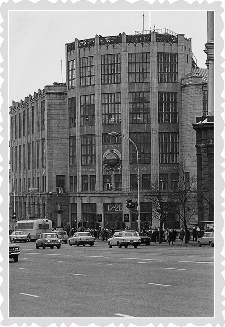 Центральный телеграф в будни. Электронные часы и погодный термометр – привычный вид из окна помимо других красот