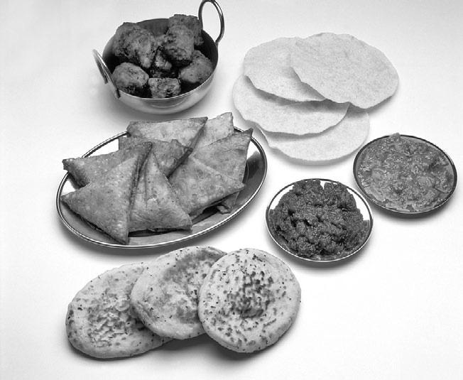 Разные виды индийского хлеба – чапати, пури, пирожки самоса