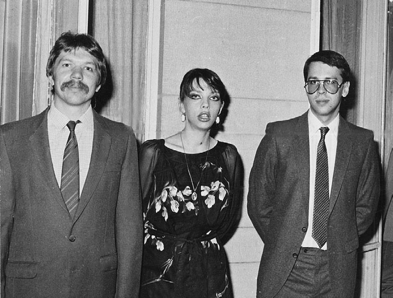 С мужем Дмитрием (справа) и Владимиром Финогеевым. 1984 г. На приеме в Посольстве СССР в Дели