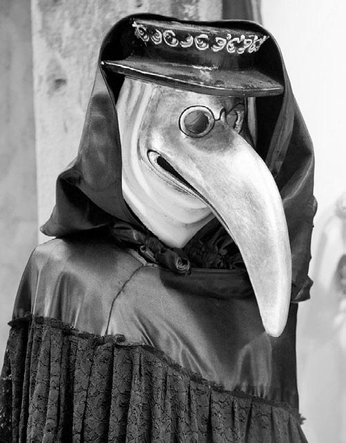 Маски – дело давнее, еще со времен чумы. Средневековые врачи считали, что чумой заражаются от ядовитых испарений, «миазмов», существующих обычно рядом с болотами, что заражение происходит через отравленный воздух, который, соответственно, надо очистить и освежить. Что только для этого не делали! Жгли костры на улицах и окуривали больных дымом лечебных трав и специй, звонили в колокола и палили из пушек, чтобы воздух «задвигался», выпускали в комнате птиц, которые махали крыльями и отгоняли болезнь. А иногда вообще советовали забивать «чумной» воздух чем-то еще более вонючим – трупным запахом дохлой кошки или испражнениями, или просто больного укладывали рядом с козлами, в прямом смысле этого слова. Поскольку большинство обычных врачей сбегало из зараженных городов, властями было решено организовать и особо оплачивать специальных «чумных» врачей, которые обязаны были оставаться в городе до конца эпидемии. И чтобы хоть как-то защититься от «чумных миазмов», врачи стали надевать пугающую маску с длинным клювом, на кончик которого – как противоядие – капали благовония. Делали это для того, чтобы якобы очистить чумной воздух через этот благовонный фильтр, своего рода средневековый противогаз. В этот длинный клюв закладывалось все самое пахучее – розмарин, ладан, лаванду, тертый лавр, розу. А поскольку маска из плотной ткани со стеклами для глаз покрывала всю голову, то дышать в этом противогазе было практически невозможно. Хотя две маленькие дырочки для доступа воздуха все же были. Представляю, какой ужас вселяли в умирающего эти фигуры врачей в черных, до пят, плащах, с длинными клювами вместо лиц и палками. Появлялись вместо самой смерти, чтобы ткнуть несчастного палкой, пробурчать что-то в свой розмариновый клюв, покачать головой в маске и уйти, унося с собой последнюю надежду. Так, видимо, умер в Венеции и великий художник Тициан, заразившись чумой от своего сына, но умер с кистью в руке, не успев закончить картину. Для самих «чумных» докторов такая масочная защита была совершенно бесполезной, но маски прижились именно с тех самых бубонных времен. Масочная «эпидемия» перешла тогда на выжившую аристократию, уж очень удобно было безобразничать, прикрыв лицо, ведь нет лица – нет и наказания. Поэтому игорные дома и бордели были наводнены анонимными персонажами-птицами в шикарных масках с перьями и блестками, которые, покуражившись и набедокуря, снимали маску и возвращались домой благочестивыми отцами семейства. «Я? А что я? Где доказательства, что это был я?» Понравилось такое и простым горожанам, ведь плохой пример заразителен. Так маски вошли в народ. Естественно, пали нравы и мораль, начались, как это водится, злоупотребления, и властям пришлось вводить ограничения, нельзя же безобразничать постоянно! Поэтому закрывать лицо можно стало только в определенные дни, которые обычно совпадали с праздниками.