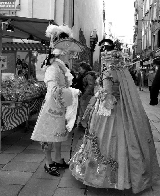 Тогда Венеция показалась мне совсем другой, вернее, еще более сказочной. Просто прибавилась театральность и зашкаливающая нереальность. Мы приехали специально на карнавал, все говорили, что это необходимо увидеть. Необходимо, и всё тут! Платья и маски были уже заказаны, надо было только выбрать цвет. Хотя зачем мне выбирать цвет, я его заранее уже выбрала – бирюзовый. Хотя от обилия платьев разбегались глаза. Одежда была совершенно настоящая, хорошо сделанная, вручную вышитая, из добротных дорогих материалов, Италия же – родина портных. Маскарадный ужин проходил в палаццо, куда мы приехали на украшенном цветами и еще чем-то тряпочным катере. Помню, там был до неузнаваемости переодетый художник Шемякин, который обожает Венецию именно в феврале. Он надевает черный камзол с кружевами, треуголку с пером и становится очень похожим на своих героев, только без длинного загнутого носика. Но самое интересное, конечно, не праздничный ужин. Самое удивительное было бродить эти несколько дней по венецианским улочкам – жизнь не совсем реальная, вернее, совсем нереальная – пудреные парики и перья, носатые маски, таинственный шепот и звон пряжек на туфлях. Все здороваются: «Как вам идет это платье, синьора!», «Как нам повезло с погодой!», «Синьора, вы прямо из того времени…»