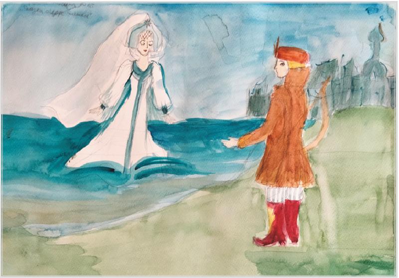 Гвидон и лебедь. «Сказка о царе Салтане». Софья Языкина, 9 лет.