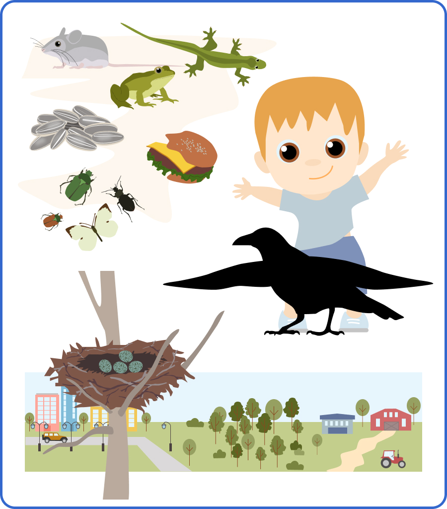 Ворона – всеядная птица. Питается семенами, насекомыми, грызунами, ящерицами, лягушками. Любит склевывать на свалках остатки еды.