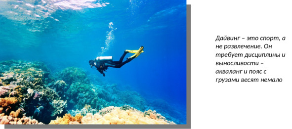 Как прыжок с парашютом, только в воду. Знакомство с еще одним измерением. Крушение рамок пространства и ощущение невесомости. Осознание ценности кислорода и каждого вдоха.