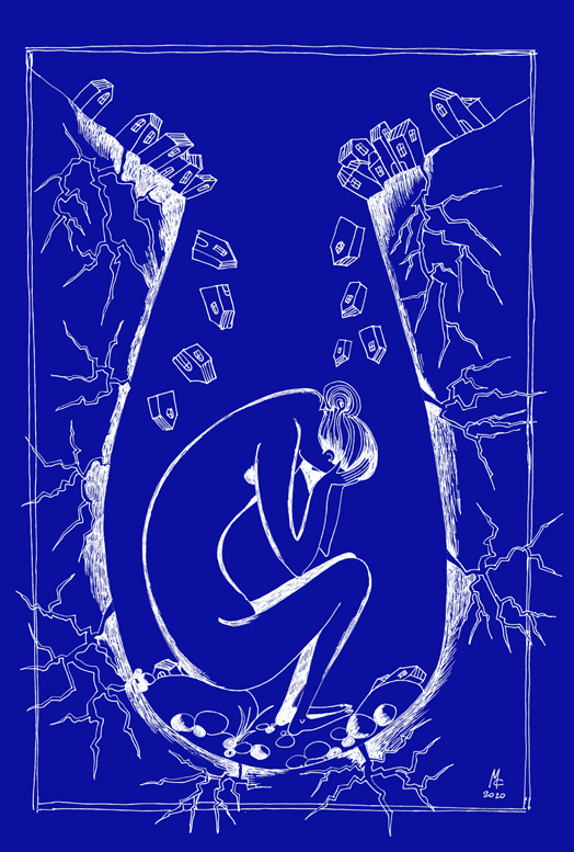 2. Возвращение к базовым уязвимостям. У всех людей есть то, что называется «трещины в фундаменте»: у кого-то детская травма, у кого-то своеобразный семейный опыт, у кого-то с генетикой особая история, кто-то тревожный, а кто-то болеет и т. д. В общем, у всех есть какой-то багаж, с которым мы приходим во взрослую жизнь: у кого рюкзачок, а у кого и целый чемодан. Обычно даже если и есть что-то болезненное или плохое в этом чемодане или рюкзачке, там всё более-менее нормально упаковано. Это значит, что мы можем идти по жизни и наш багаж и его содержимое не будут сильно нам мешать. Кризис приводит к взрыву в рюкзачке или чемодане. Наши базовые сложности и проблемы вылетают оттуда на большой скорости, и мы снова сталкиваемся с ними нос к носу. Наверное, есть люди, которым в кризисе везёт не так уж сильно удариться о свои уязвимости, но таких меньшинство. То, что обычно происходит, – это практически универсальный опыт: люди массово стукаются и ранятся о те самые ступеньки в своём развитии, с которыми в общем-то всю жизнь до этого и боролись или пытались справиться. Например, у вас плохо получается горевать, – вот вам 500 кг горя, так как кризис связан с утратой привычного уклада жизни. Вам мешает склонность к тревоге? Вот вам ещё больше тревоги, так как в кризисе много неопределённости. Иметь базовые уязвимости – это общечеловеческая трагедия. И это часть проблемы любого кризиса, когда базовые человеческие уязвимости обнажаются, как бы хорошо они ни были проработаны. Кризис нас к ним неизбежно возвращает, и мы снова не знаем, что делать.