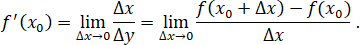 Производной функции в точке называется предел отношения приращения функции к приращению аргумента, если приращение аргумента стремится к нулю и если этот предел существует