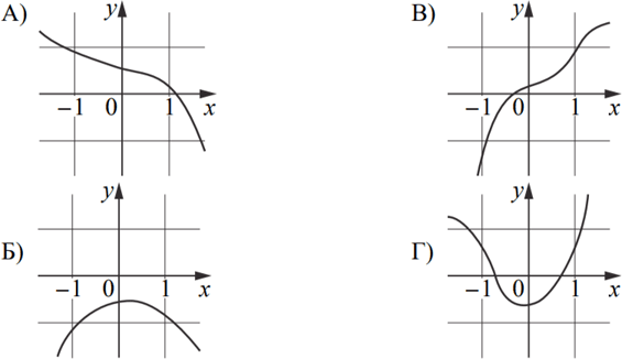 Установите соответствие между графиками функций и характеристиками этих функций на отрезке [-1; 1].