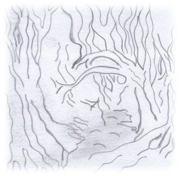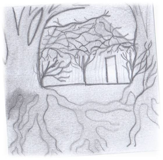 Путников подвели к небольшой хижине, стоящей чуть дальше всех остальных между двух огромных елей. При первом взгляде казалось, что ее образует само дерево своими корнями, словно пряча и защищая от чужого взгляда.