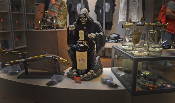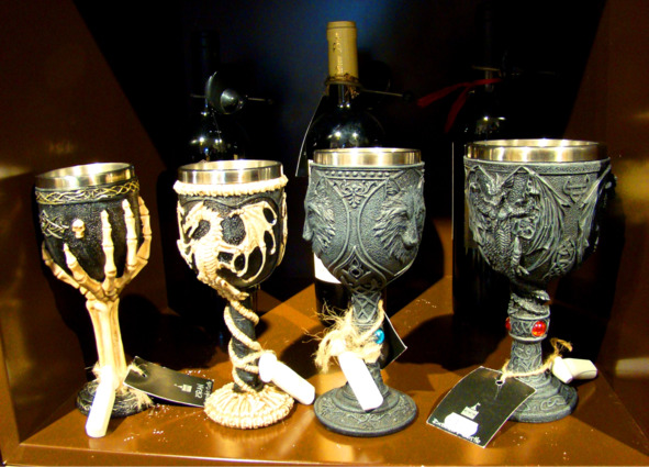 Отдельно хочу сказать, что в замке Бран имеется пара сувенирных магазинов, торгующих, помимо прочего, великолепными винными бокалами. Они металлические, с отделкой из полимерной глины в виде скелетов, драконов, черепов и прочих устрашающих элементов, и предназначены для ценителей мрачной эстетики. На территории Брана есть два магазина: один во внутреннем дворе, другой – на выходе из подземелья. Во внутреннем дворе эти бокалы немного дешевле. Подвох в том, что если вы решите спуститься в подземелье, то во внутренний двор вернуться уже не сможете. Ещё один подвох – таких бокалов я не видела больше нигде, сколько ни искала. Конечно, их можно найти и в России: они бывают в рок-магазинах, по той же цене, что и в Бране, или чуть дороже. Однако, если вам принципиально привезти что-нибудь эдакое именно из замка Дракулы – возьмите на заметку.