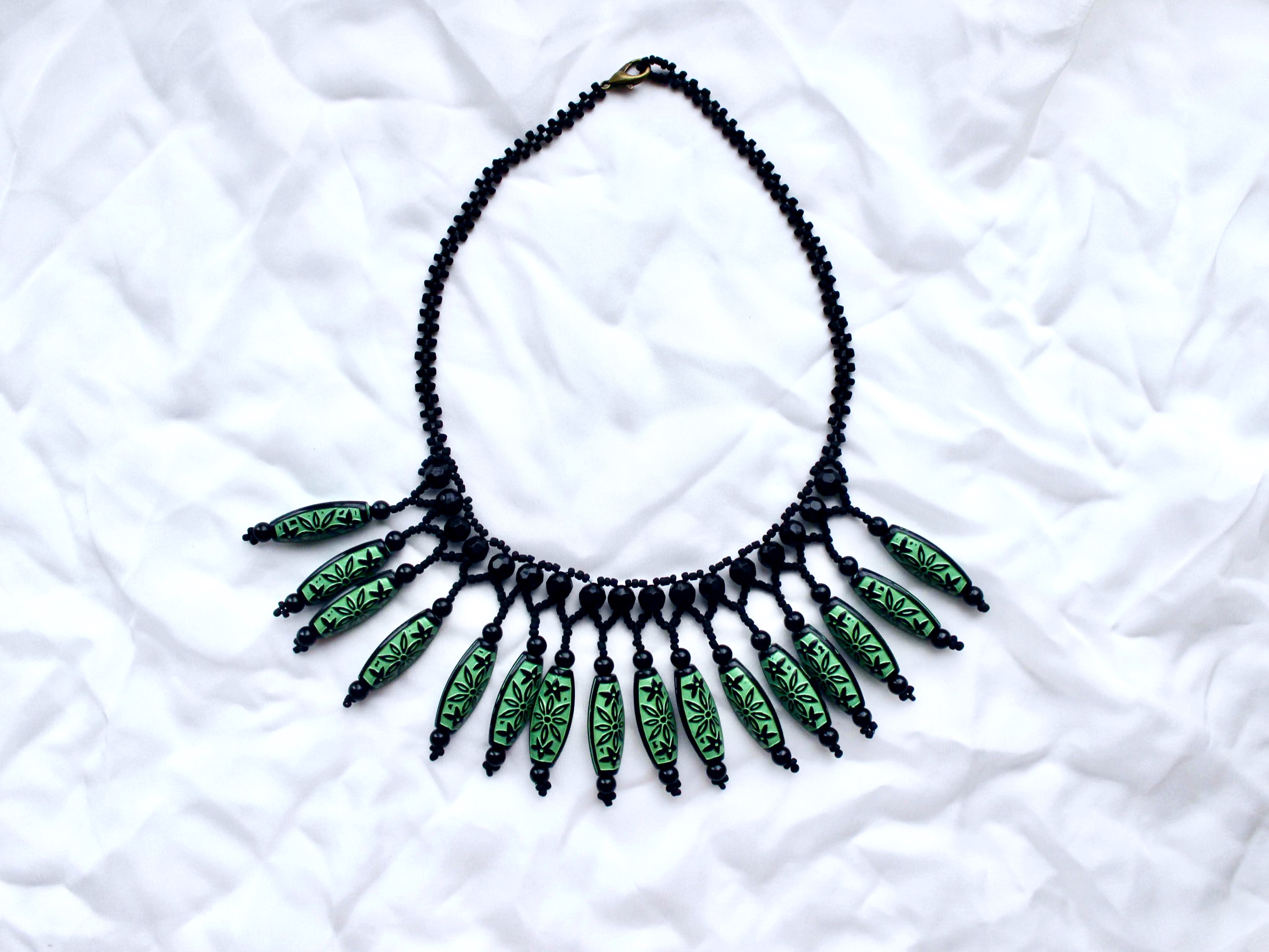 4) Длинные бусины контрастного цвета с чёрным рисунком – 16 шт (плоские);