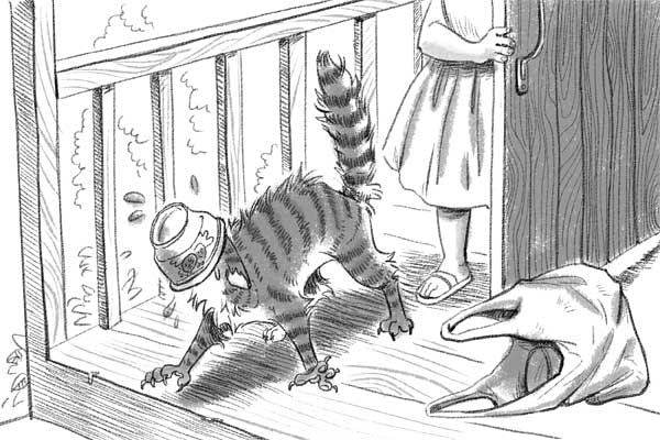 Лежит он, значит, такой умиротворённый, дзен ловит. А тут Игорёк из окна как высунется, как заорёт. Багет наш, привыкший к причудам людским, и бровью не повёл. Но когда в него полетело что-то твёрдое и явно несъедобное, пришлось отступать в кусты. Да так, что клок шерсти на столе остался – влип в краску по полной. Жаль, не видел всё своими глазами, доверился рассказу Тюленя. А вот Багета стало жаль, ходит теперь с полосками цвета странной груши. Ага! Но мне он как-то ближе стал даже: оказывается, и пантеры бывают уязвимыми.