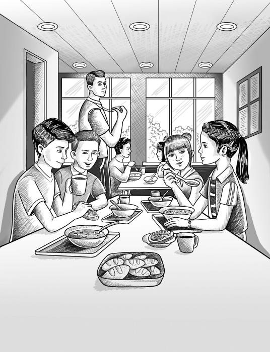 К ужину ребята успели договориться друг с другом, перезнакомиться, угомониться, получить первые замечания от вожатых и ужасно проголодаться. Тем более что из столовой вкусно пахло пловом и клубничным компотом.