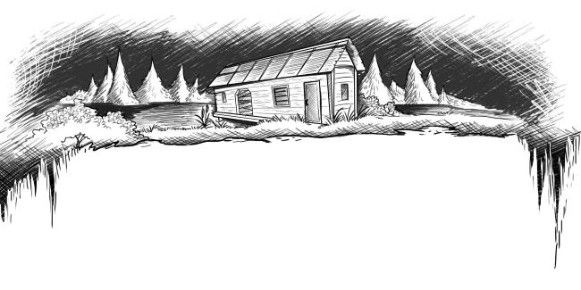 Идти по тёмному лесу было весьма неприятно. То тут, то там что-то шуршало, скрипело. Сосны на ветру гудели. И казалось, будто в глубине леса стонет человек или призрак. Лодочный сарай при свете дня выглядел куда более приветливым. Теперь же он отталкивал. А все предметы, находившиеся внутри, исказились во мраке. Стали напоминать мрачных существ.