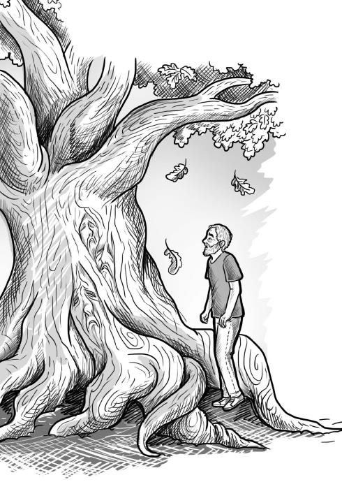 Сосна в чаще отличалась от всех других деревьев своим возрастом. Говаривали, что перевалило ей за тысячу лет. Ствол её и ветви покрывал толстый слой серебристого мха. Макушка вся изогнулась и скрючилась. Корни уходили далеко-далеко под землю. Там, под землёй, сосна и черпала свои магические силы. Исполняла она все желания на свете, так как проросла сквозь руины загадочного старинного города. Жили в нём то ли первые колдуны, то ли полубожества лесные. А может, какие инопланетные сущности. Возле той сосны не выживал ни один сорняк, только поганки росли там в два круга. Их ещё называли «ведьмины кольца».
