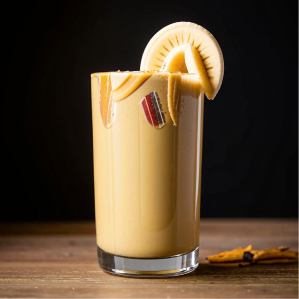 Смешивание: В блендере соедините все ингредиенты и взбивайте до однородности. Подача: Разлейте по стаканам и украсьте дольками банана.