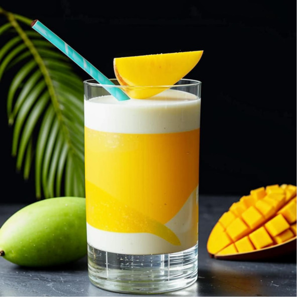 1 стакан кокосового молока: можно использовать консервированное или свежее. 1 стакан свежего манго: очищенного и нарезанного. 1 ст. ложка меда: для сладости. Лед по вкусу: для охлаждения.
