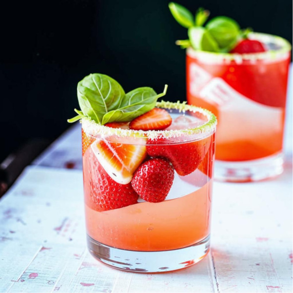 1 стакан свежей клубники: очищенной и нарезанной. 1/2 стакана йогурта: натурального или греческого. 1/4 стакана свежего базилика: придаст особый аромат. 1—2 ст. ложки меда: по вкусу. Лед по вкусу: для охлаждения.