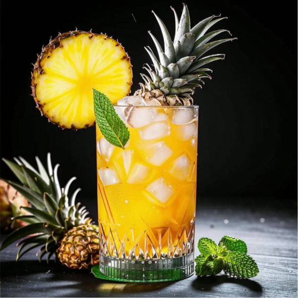 1 стакан ананасового сока: свежевыжатого или консервированного. 1/2 стакана йогурта: для кремовой текстуры. 1/4 стакана свежей мяты: для аромата. Лед по вкусу: для охлаждения.