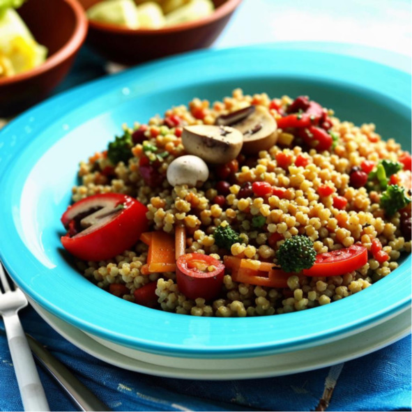 Отвари гречку в 2 стаканах воды согласно инструкции. На сковороде разогрей оливковое масло, обжарь лук до прозрачности. Добавь нарезанные грибы и морковь. Обжаривай до готовности. Смешай с гречкой, посоли и поперчи, прогрей и подавай.
