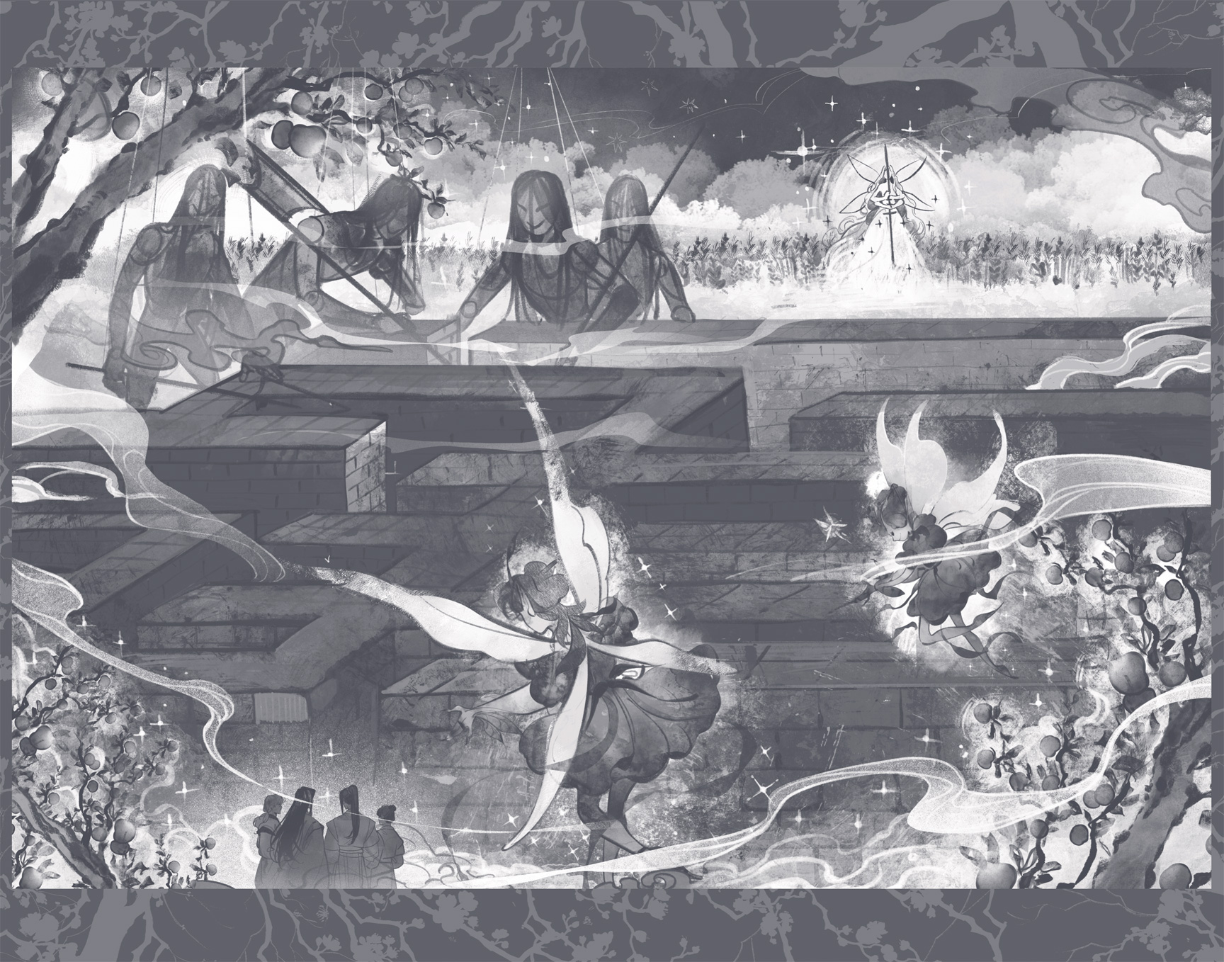 Это изводило. В его голове ежедневно вертелись сотни предположений, что еще может пойти не так и каким образом Шен может погибнуть. Он мог бы написать доклад на тему «Тысяча способов смерти старейшины пика Черного лотоса». Ни один его враг не удостаивался столь детальных планов умерщвления. Наверное, если бы благодаря «связи» он не чувствовал на расстоянии физическое состояние Шена, то мог бы и свихнуться, бросив все дела и хвостиком ходя за старейшиной Проклятого пика, проверяя, не вляпался ли он в очередные неприятности прямо сейчас. Связь успокаивала и давала уверенность, что с ним все хорошо, и Муан мог позволить себе заниматься повседневными делами, которые успели накопиться за время его отсутствия. И все же глубоко в сознании, куда он загонял их, непрестанно крутились панические мысли о смерти. Человеческая жизнь такая хрупкая, и этот человек казался самым хрупким из всех.