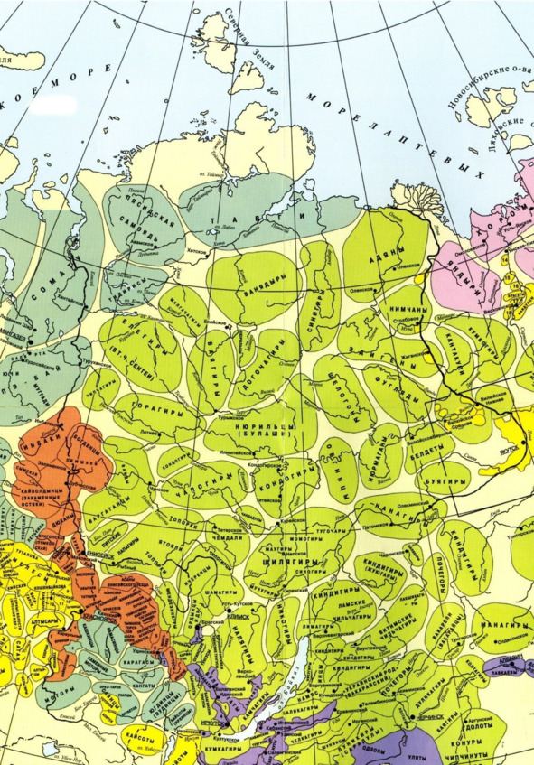 Б. О. Долгих. Карта расселения народностей. 1960.