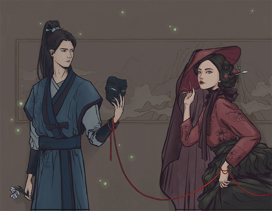 Мир, непохожий на людской, заполняет всё пространство. Светлячки танцуют причудливый танец под раскидистой ивой, укрывшей своими ветвями двоих сидящих под ней людей. Девушку и мужчину. Она лежит у него на коленях, её окровавленная рука тянется к щеке мужчины, по лицу которого течёт слеза. Лишь кончиками пальцев она вытирает слезинку и шепчет ему что-то. Её рука обессиленно падает на землю. Он кричит и крепко прижимает её к себе. Мир содрогается, светлячки, словно золотой снег, падают на землю один за другим. Красная ниточка, связывающая двоих, натягивается и рвётся…