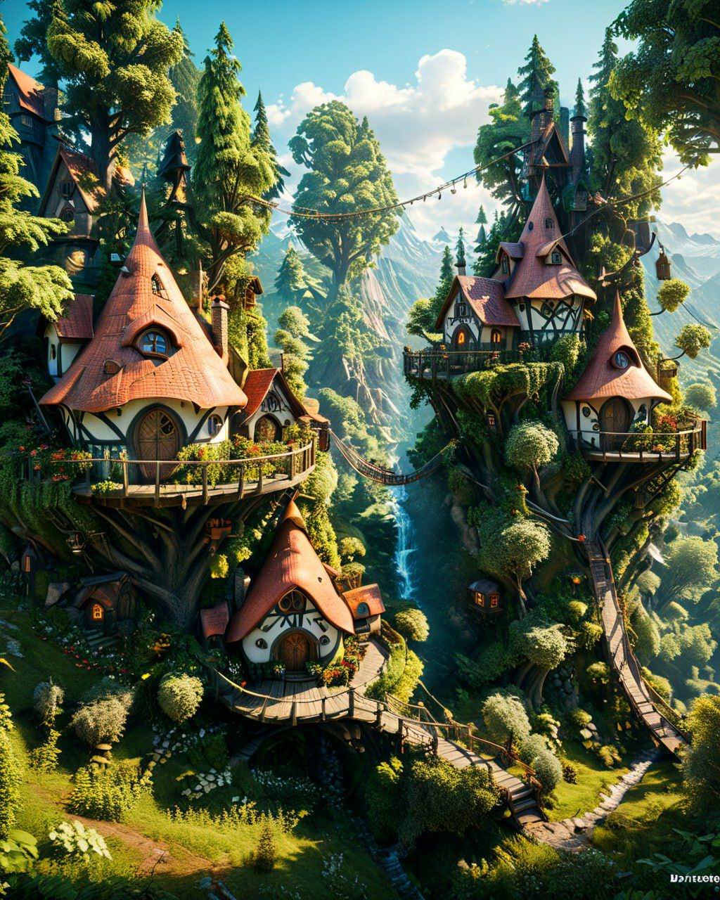 Диккоты строили свои жилища на разных участках Земли: в лесу, на скалах, вблизи водоемов. Их причудливые дома напоминали старинные замки! Строения поднимались друг за другом вверх, образуя ярусы, и соединялись между собой переходами: мостами, настилами, лестницами.