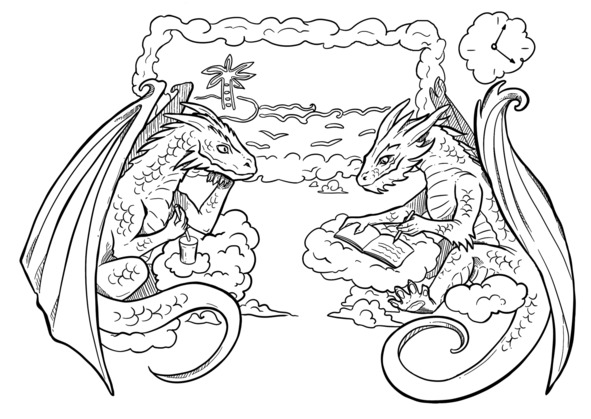 В просторном классе школы, стены которой были построены из крупных кучевых облаков, за белыми круглыми партами-тучками два юных Дракона – Тихий и Легкий – обсуждали свой практический день: