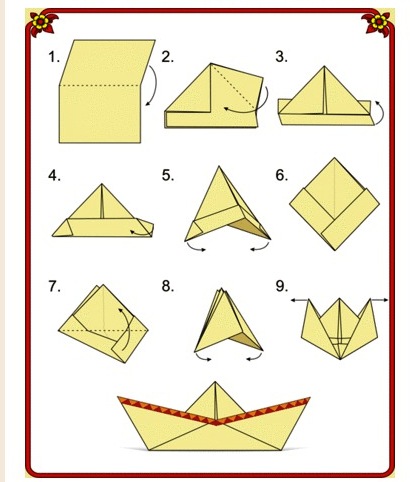 Сложенный по такой схеме кораблик некоторые используют в декоративных целях. Сделанный из цветной бумаги, он может стать частью гирлянды или просто украшением детской. А может превратиться в поздравительную открытку к 23 февраля для папы или дедушки.